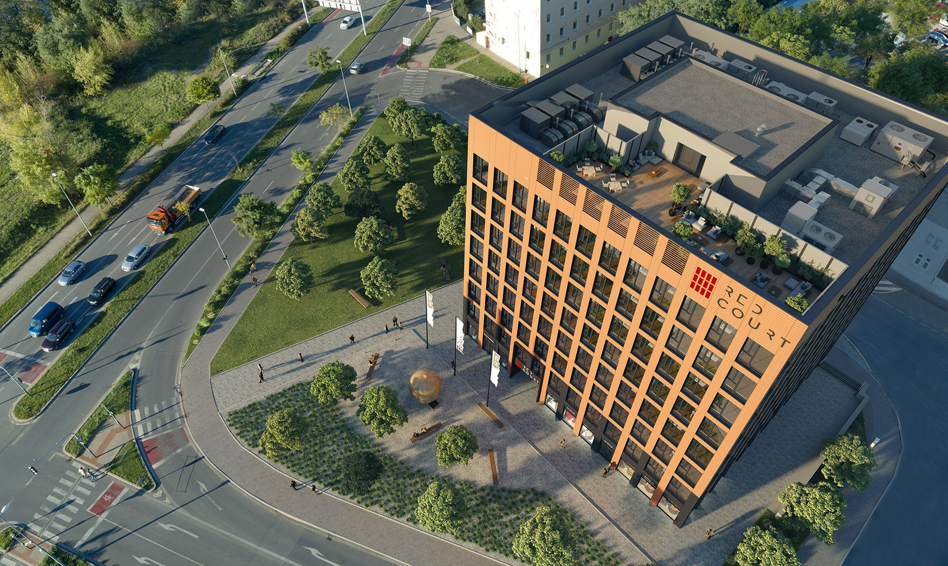 Architektonický koncept inspirovaný průmyslovým původem lokality nazvaný Red Court představuje další administrativní budovu na atraktivním pozemku v blízkosti metra Invalidovna. Kompaktní velikost budovy může být zajímavou příležitostí pro jednu firmu hledající nové sídlo, stejně tak je možné si kancelářské prostory pronajímat po jednotlivých patrech až čtvrtpatrech.
