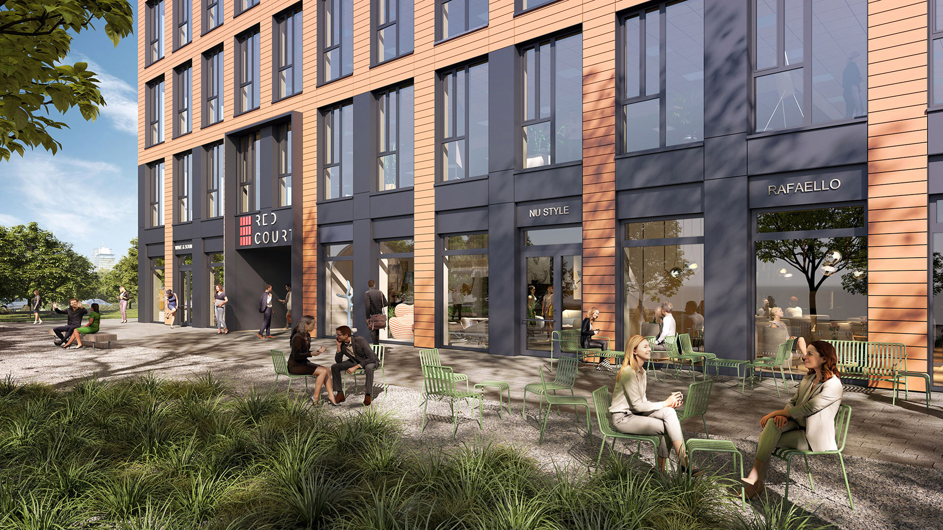 Architektonický koncept inspirovaný průmyslovým původem lokality nazvaný Red Court představuje další administrativní budovu na atraktivním pozemku v blízkosti metra Invalidovna. Kompaktní velikost budovy může být zajímavou příležitostí pro jednu firmu hledající nové sídlo, stejně tak je možné si kancelářské prostory pronajímat po jednotlivých patrech až čtvrtpatrech.